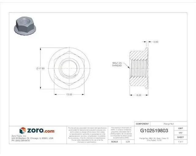 MIDWEST FASTENER 75713 Flange Nut, M8-1.25, Steel, Class 10, Zinc Plated, 15 PK