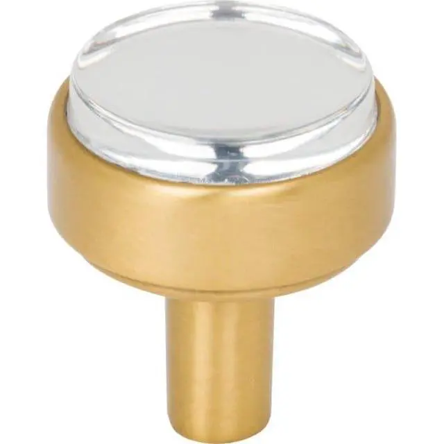 Bold, beautiful, and brilliant, Carmen from Jeffrey Alexander is the perfect union of classic and contemporary. This 1-1/8 diameter Brushed Gold cabinet knob with crystal-clear acrylic and industrial yet elegant step details evokes everlasting style with a modern-day twist. Pair this knob with three coordinating pull lengths or a 2 overall length cabinet T knob in six designer favorite finishes to instantly brighten your kitchen, bath, or closet. Each item is individually wrapped to protect the item from damage. Attachment hardware is included.