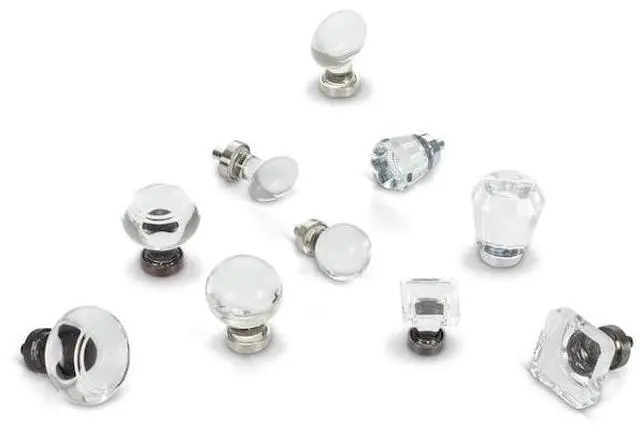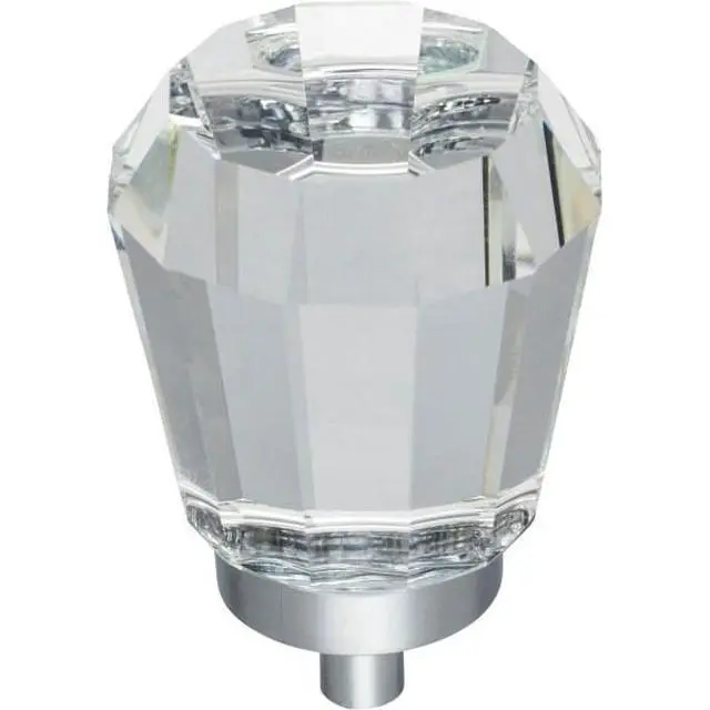 Recalling the glamorous era of Old Hollywood, Harlow glass knobs add excitement and radiance to any kitchen, bath, or closet. This lavish 1-1/4" diameter Polished Chrome faceted cabinet knob, also available in a smaller size, adds understated extravagance to any project in any room. This Jeffrey Alexander collection offers four finish options, meeting both traditional and transitional design needs. Each item is individually wrapped to protect the item from damage. Attachment hardware is included.