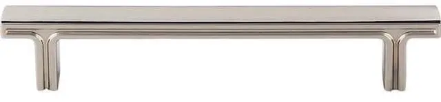 The intricate decorative line detail and soft edge of this 6-3/8" overall length modern Polished Nickel Anwick cabinet pull create a unique and unrivaled contemporary look. Pair this Jeffrey Alexander pull with a coordinating square or rectangle knob, or mix in five other pull length options to fit even the widest drawer. This stylish collection is available in three additional alluring finishes to complement any modern or contemporary design. Each item is individually wrapped to protect the item from damage. Attachment hardware is included.