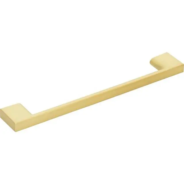 Sutton's square profile is softened with a warm and graceful curve that flows around the handgrip all the way through to its feet. The narrow design of this 7-1/2" overall length Brushed Gold Jeffrey Alexander pull can make both a fearless statement and whisper sophistication. Find the perfect finish choice with one of eight on-trend finishes offered this or four other standard pull lengths. Each item is individually wrapped to protect the item from damage. Attachment hardware is included.