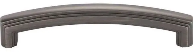 Delgado is a contemporary, steadfast design that creates a clean look while also having a great feel in the hand. This 5-9/16" overall length Brushed Pewter Jeffrey Alexander pull has stretching soft lines with a unique linear stepped detail, adding a little more personality. This handsome design is available in two additional standard pull lengths, a 12" and 18" appliance handle, and also has a coordinating 1-9/16" cabinet knob. The details of this modern collection shine through in five beautiful finishes. Each item is individually wrapped to protect the item from damage.