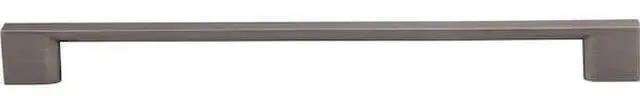 Sutton's square profile is softened with a warm and graceful curve that flows around the handgrip all the way through to its feet. The narrow design of this 11-7/16" overall length Brushed Pewter Jeffrey Alexander pull can make both a fearless statement and whisper sophistication. Find the perfect finish choice with one of eight on-trend finishes offered this or four other standard pull lengths. Each item is individually wrapped to protect the item from damage. Attachment hardware is included.
