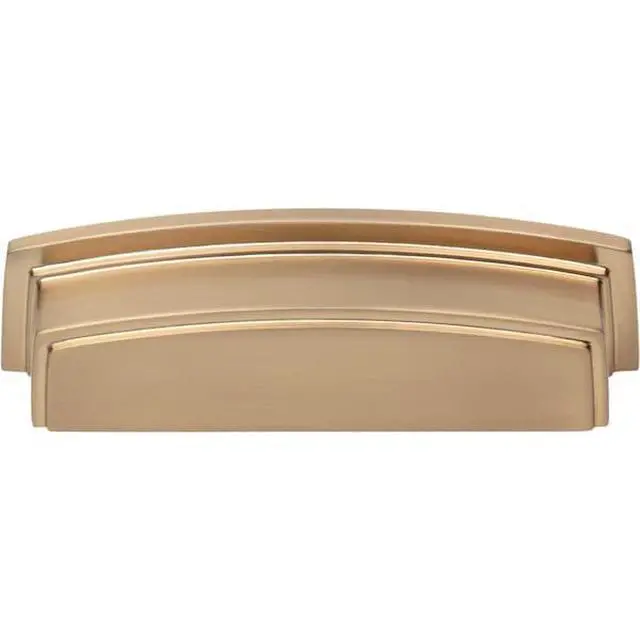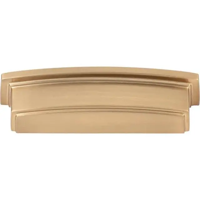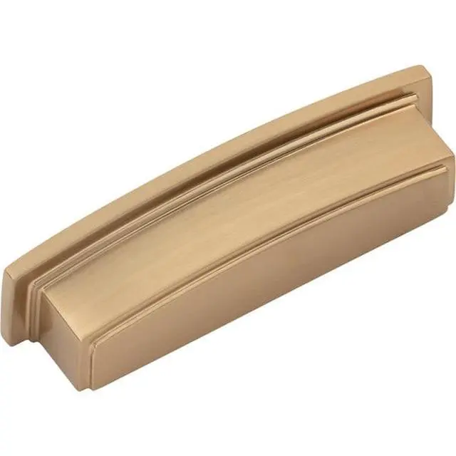 Thoughtfully balanced lines blend with a boldly stepped profile in Jeffrey Alexander's Renzo, resulting in a strong and debonair presence. This 4-5/8" overall length Satin Bronze cup pull pairs beautifully with two coordinating knob sizes and is available in four additional center-to-center options in seven top trending finishes. Revitalizing the admired cup pull with its modern squared shape, this adaptable collection enhances the look of almost any cabinet style while adding functionality with its dual hole mounting options. Each item is idividually wrapped to protect the item from damage. Attachment hardware is included.