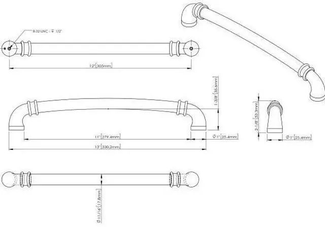 The regal presence of Marie adds subtle grandeur to your cabinets with its elegant swooping lines and jewelry-like cuff detail. Adapted from a Jeffrey Alexander classic, this 13" overall length Satin Bronze appliance handle features a soft arch that discreetly adds extra hand clearance without being imposing making it perfect for Aging in Place or ADA needs. This refined collection offers five standard pull lengths and two appliance handles that are complemented by a 1-1/4" knob with similar cuff detail. Available in five additional finishes, Marie brings instant sophistication to any kitchen, bath, or closet.