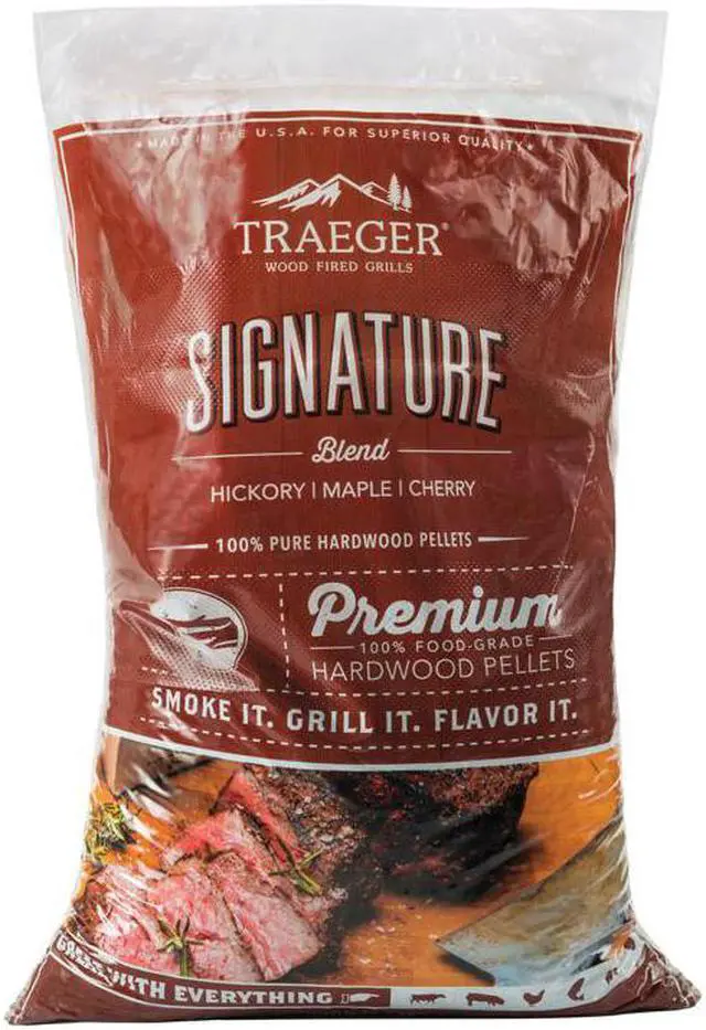 Traeger, 20 LB, Signature Blend Pellets, Blend Of Hickory, Maple and Cherry Woods, 100% Hardwood, Bag.