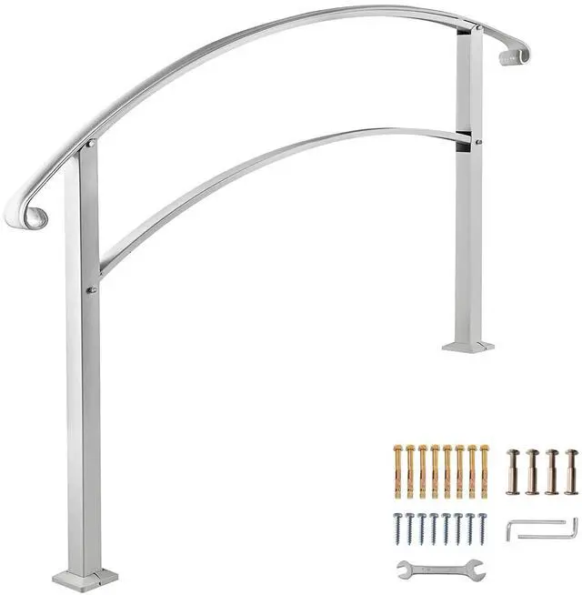 Handrails for Outdoor Steps, Fit 1 or 4 Steps Outdoor Stair Railing, White Wrought Iron Handrail, Flexible Front Porch Hand Rail, Transitional Handrails for Concrete Steps or Wooden Stairs