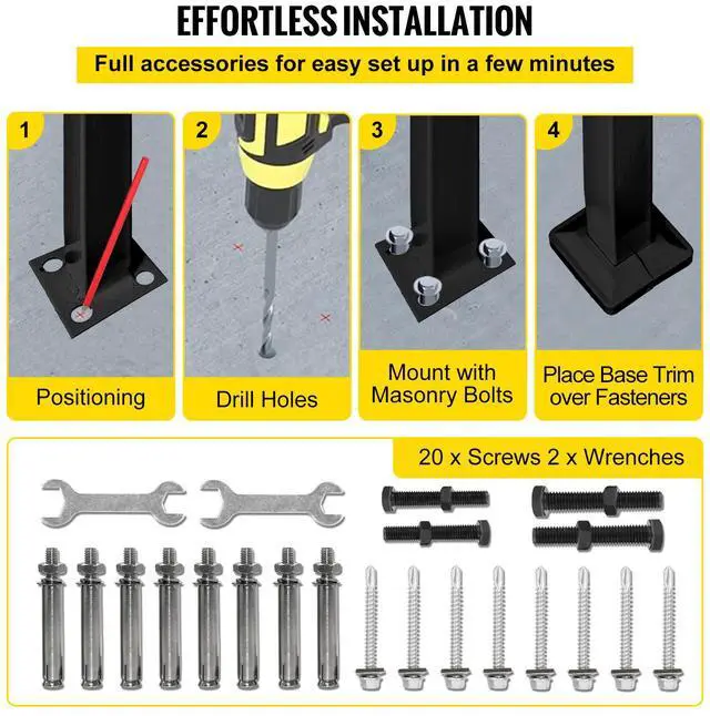 Package Content 1 x Handrail 2 x M6 Bolts 2 x M8 Bolts 8 x Self-Tapping Screws 8 x Expansion Screws 2 x Open-Ended Spanners 6 x Gaskets