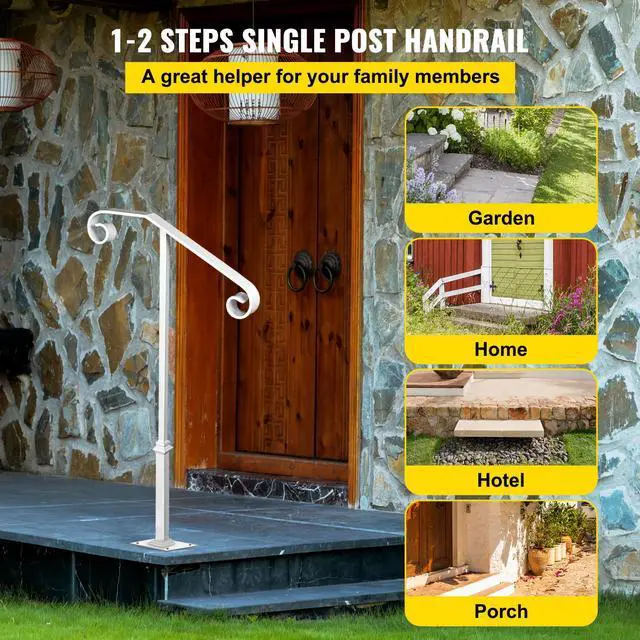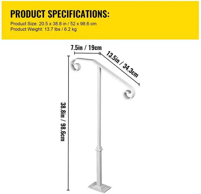 Fit for 1 or 2 Steps: The top area of the single post handrail allows for a full 20.5" of gripping space. The height is 38.8", and the 4" x 6" base plate improves stability. It is perfect for helping people keep balance in the rain or winter and prevent skidding.