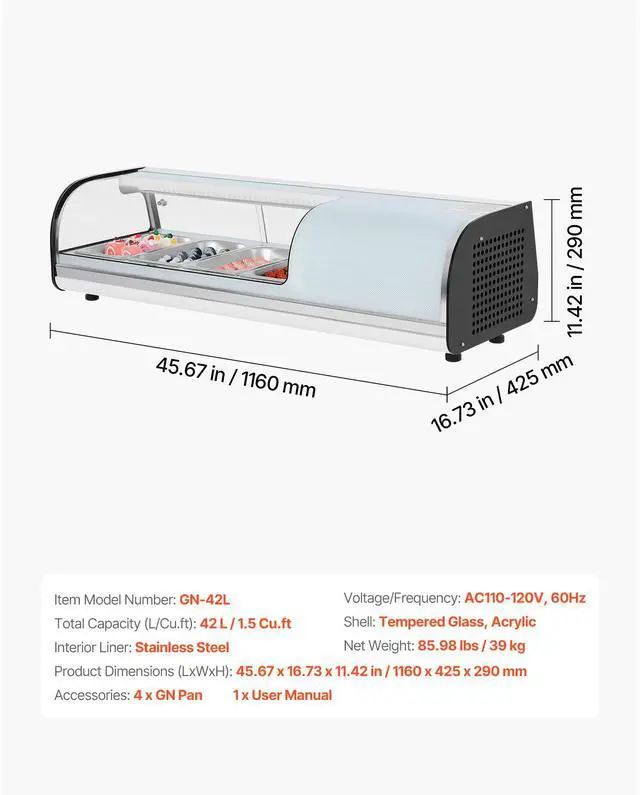 Product Dimensions (LxWxH): 45.67 x 16.73 x 11.42 in / 1160 x 425 x 290 mm