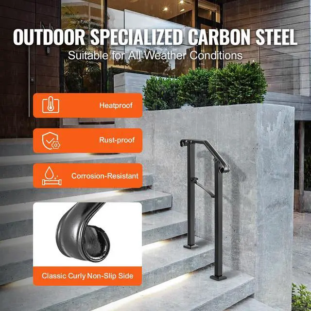 Sturdy Wrought Iron: This outdoor stair railing is made from durable wrought iron material with thick solid bases, which is more rigid and reliable than aluminum products. The stable and sturdy construction ensures an excellent load capacity to provide a secure grab bar for your family. Moreover, the ergonomic design is adopted to create a comfortable grip.