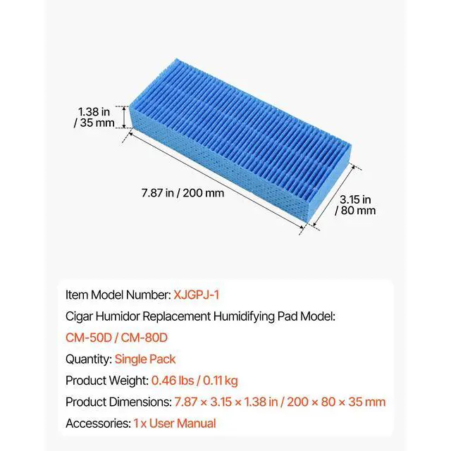 Cigar Humidor Replacement Humidifying Pad Model: CM-50D/CM-80D