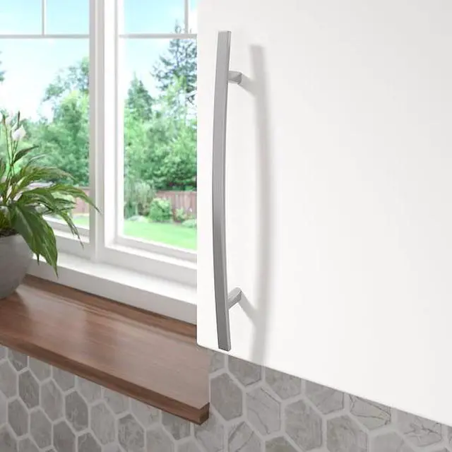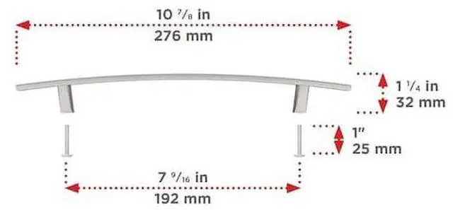 This Richelieu transitional style pull refreshes the look of kitchen and bathroom cabinets. Its slightly curved shape will add a distinguished look to your interior décor. Please note that the screws included with the products are a standard size of 1 in (25 mm) length, quadrex, pan head. They will fit with most of the popular melamine thicknesses, which range between 5/8 in to 3/4 in (16 mm to 19 mm).