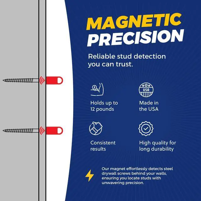 Wave the magnetic stud finder slowly over your wall and feel it pull toward the stud—it’s like the wall is doing the work for you. Just follow the pull and stick it right where it grabs.