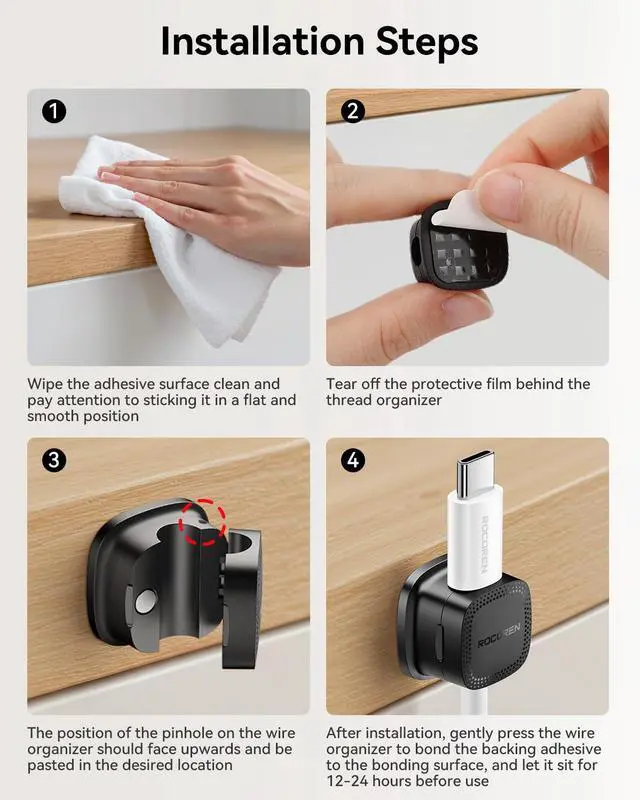 The wire clip manager uses enhanced acrylic adhesives, Compared with general adhesives, it improves adhesion by 200%, and does not leave any residue after being pasted, and is equipped with a replacement package.