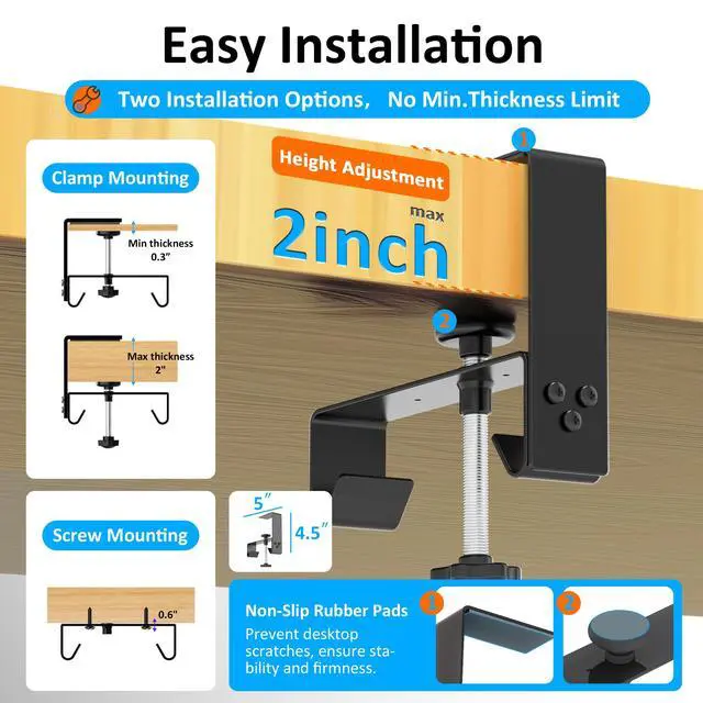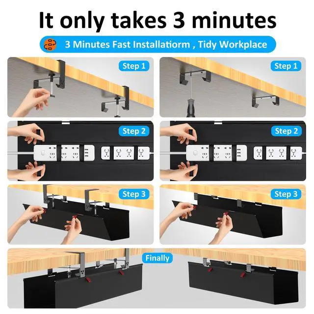 Easy Installation: Our under-desk cable tray features two installation methods, with optional clip-on or screw-mounted brackets. The process is effortless and convenient, requiring no drilling. Simply clamp or tighten easily to quickly complete the installation of the computer cable organizer.