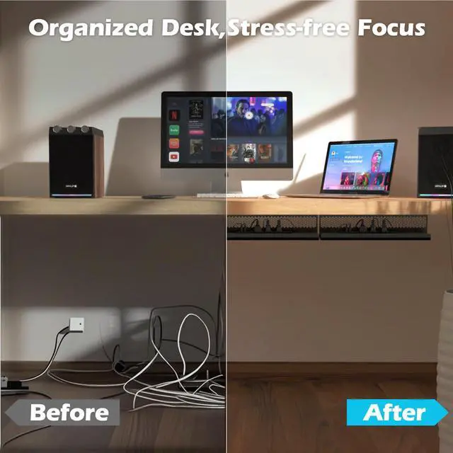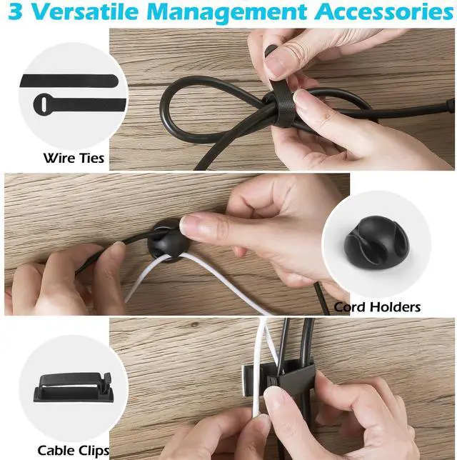 All-in-One Cable Management Kit - Your desk cable management comes with 2 organizers, 6 cable clips, 10 wire ties, 4 cord holder and 4 screws, which help route wires neatly along desks, everything you need to tame messy cords behind your desk, under your TV stand, or along your home office wall.