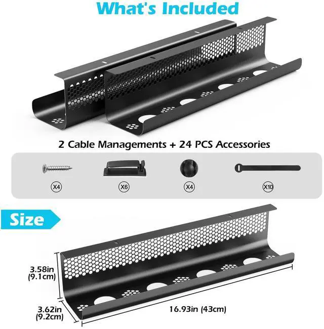 Easy, Tool-Free Installation - Simply secure 2 cable management trays under your desk with the included screwsno drilling needed! Ideal for most desks in offices, study rooms, or home workstations.