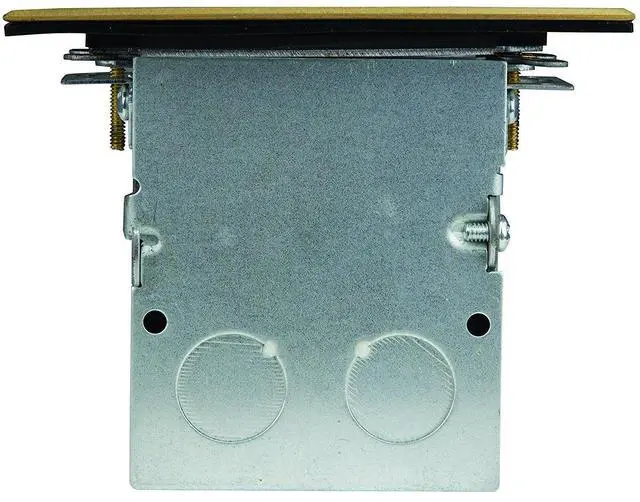 The cover thickness is approximately and is corrosive resistant. The openings for this floor box can be accessed using a coin, such as a quarter, or a flat-head screwdriver. Each port is made to protect against liquid spills.