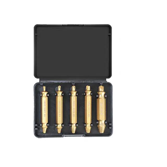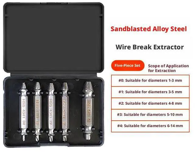 SOEWIOU broken screw extractor set is made of premium 4341 high speed steel, featuring outstanding hardness, wear resistance and strong torsion resistance for tough removal work. Designed with double-head integrated structure in sleek silver finish, it easily takes out stripped, slipped, rusted and broken screws & bolts without damaging surrounding threads. The sharp fluted cutting edge grips firmly into damaged screw cores, providing stable grabbing force during reverse twisting and improving removal efficiency greatly. Precision machining ensures smooth drilling and tapping, suitable for various metal screws, machinery maintenance, home repair and hardware disassembly scenarios. Compact portable design, durable for repeated use and long service life. Ideal for mechanics, maintenance workers and DIY enthusiasts to solve broken screw troubles quickly.