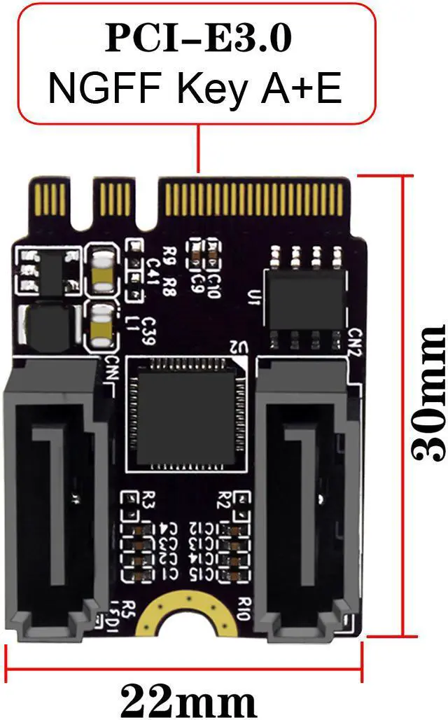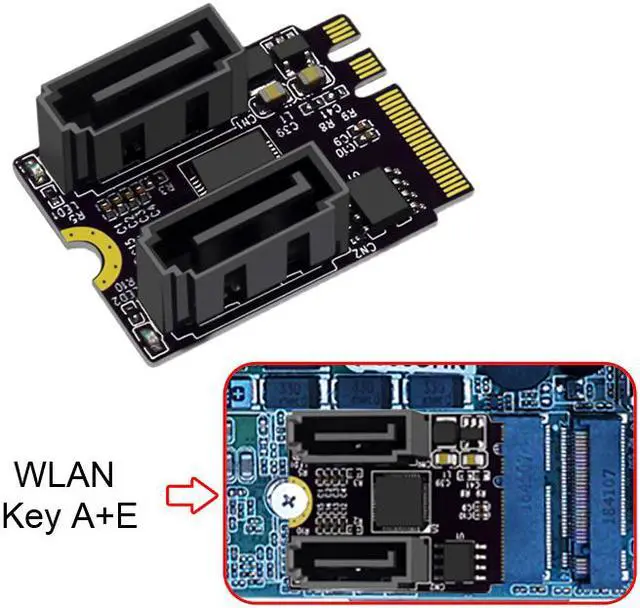 NGFF Key A+E PCI Express to SATA 3.0 6Gbps Dual Ports Adapter Converter Hard Drive Extension Card JMB582