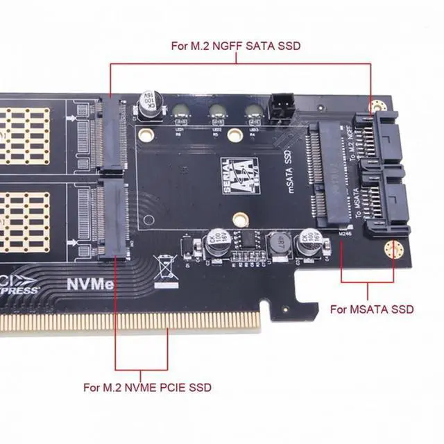 PCI Express PCI-E 3.0 Dual SATA to NGFF NVME MSATA M-Key B/M-key SSD Card Adapter 3in1