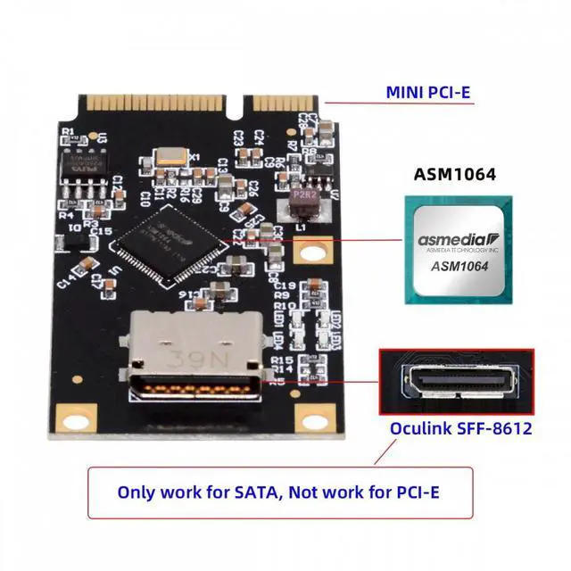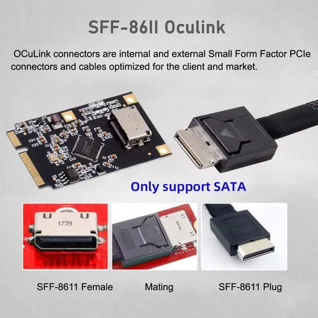 Oculink 4x connectors are internal and external small form factor for 4 SATA connectors and cables optimized for the client and market. (The adapter not work for any PCI-E/SAS device.)