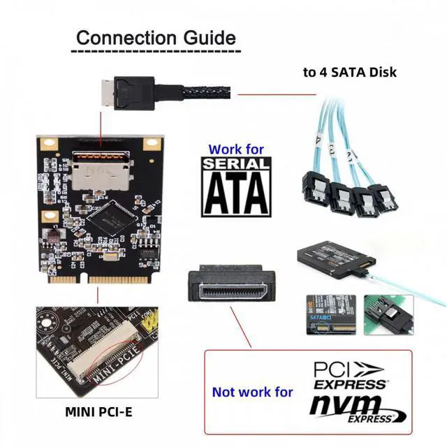 Mini PCI-E PCI Express to Oculink SFF-8612 SFF-8611 SATA 3.0 Four Ports Adapter Converter 6Gbps Disk Extension Card for SSD