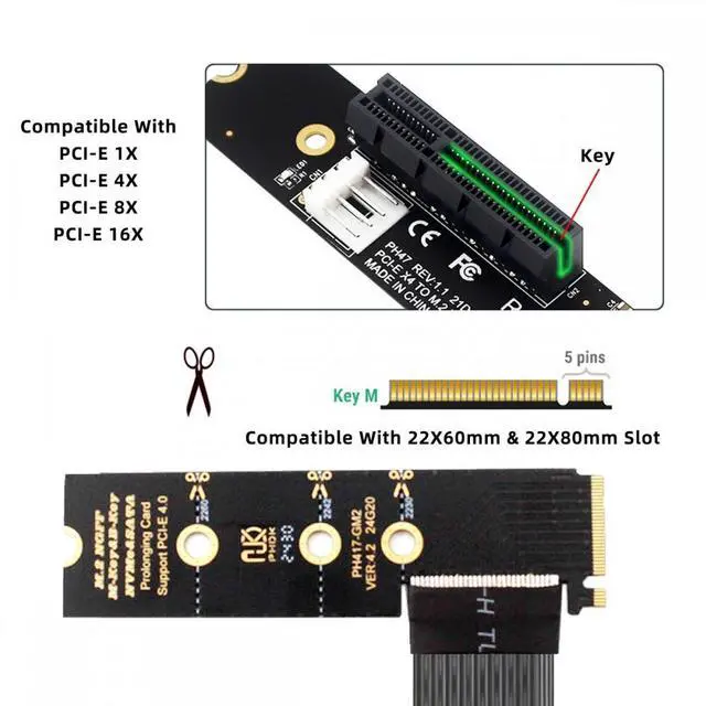 1) M.2 to PCIe 4.0 Extender can convert the NVME slot on the motherboard into the PCIe slot, which is used to connect various PCIe X4 devices cards, and can also supports PCIe X8, X1 and X16 devices.