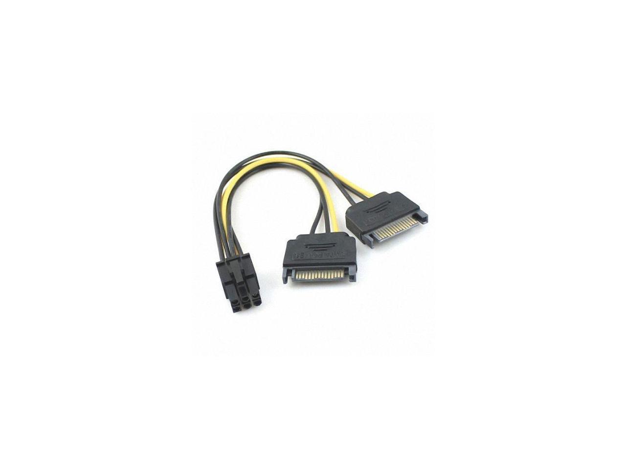 - Dual 15 pin Male SATA Power to 6 Pin Female PCIe