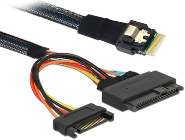 This cable can be used to connect internal devices, e.g. a device with SFF-8639 connector to a controller with Slimline SFF-8654 4i connector.