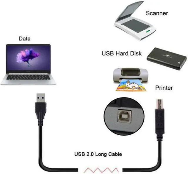 8m 5m 3m USB Standard-B Type to USB 2.0 Male Data Cable for Hard Disk Scanner Printer