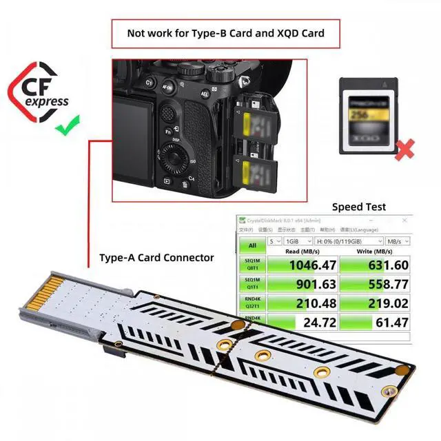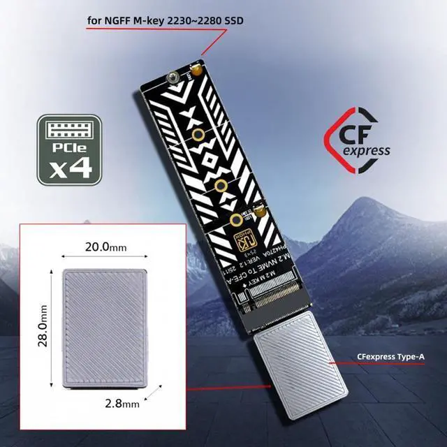 CFexpress Type-A to NVME 2230 2240 2260 2280 Memory Card Kit,Extend the NVME from 2230/2242/2260/2280 SSD to CFexpress Typa-A socket.