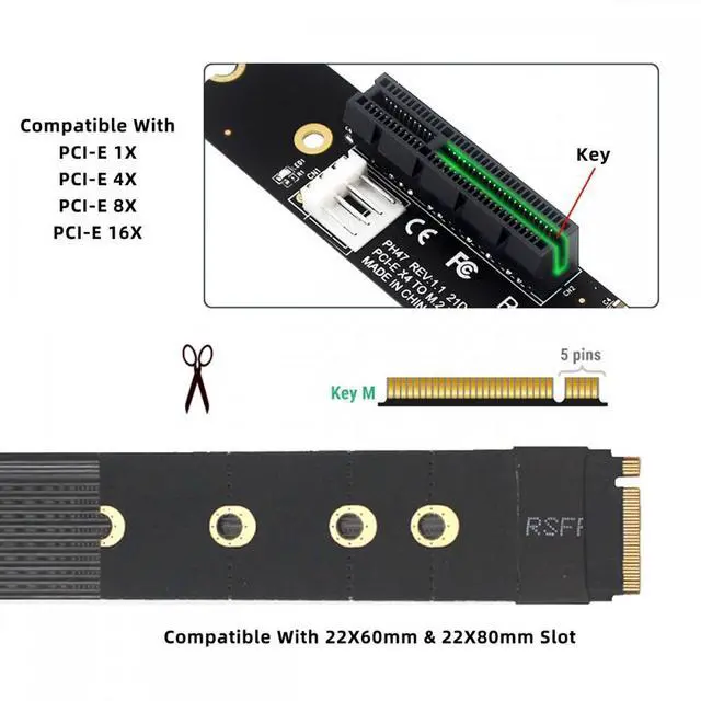 M.2 NGFF NVMe M-Key Extender to PCI-E X1 X4 X8 X16 Graphics Card Riser Cable PCI-Express for M2 2260 2280