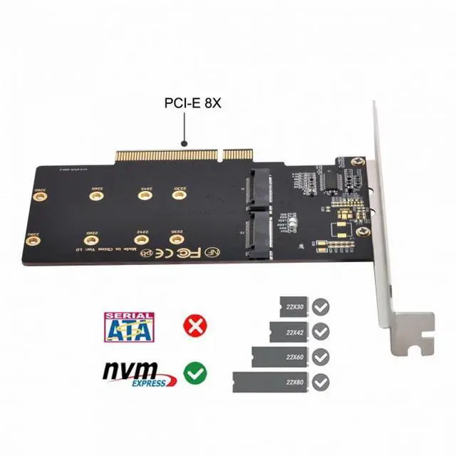 2.Only supports motherboards with detachable PCI-E channels.Control the operation of two disks based on the motherboard PCIE channel,The motherboard without PCIE signal split can only recognize one disk.