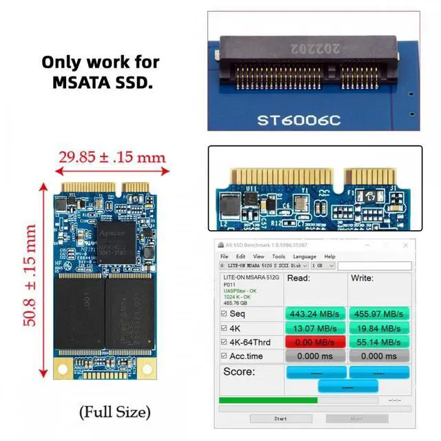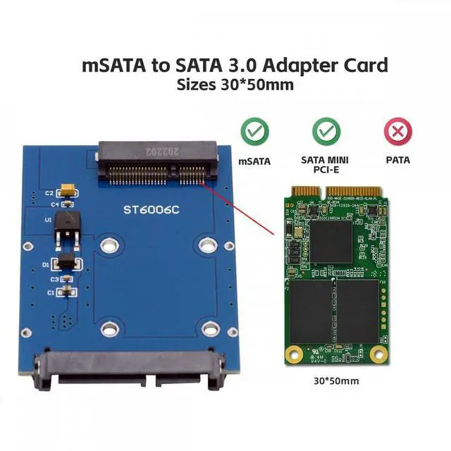 Note: This adapter is only compatible with MSATA connector. Not compatible with 50mm Mini PCI-e SATA and Mini PCI-e PATA.