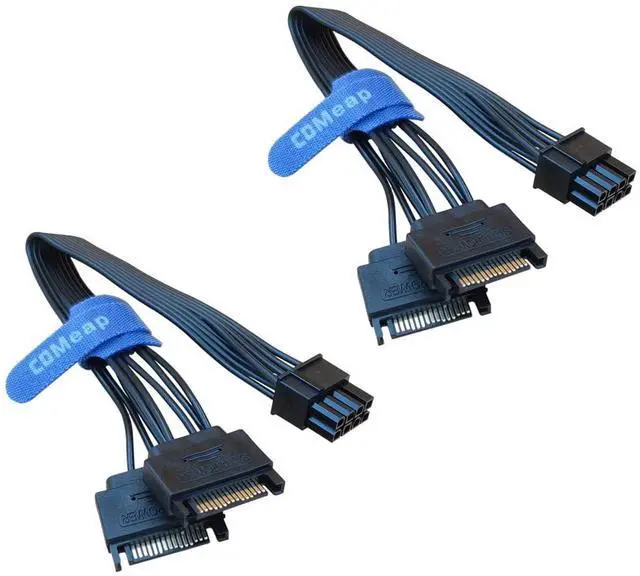 The COMeap SATA to 8 Pin GPU Power Adapter is to provide a convenient solution for a power supply without PCIe connection for GPU power, Dual SATA connectors were designed to connect separate rails to power the PCIe video graphics card from an older PSU.