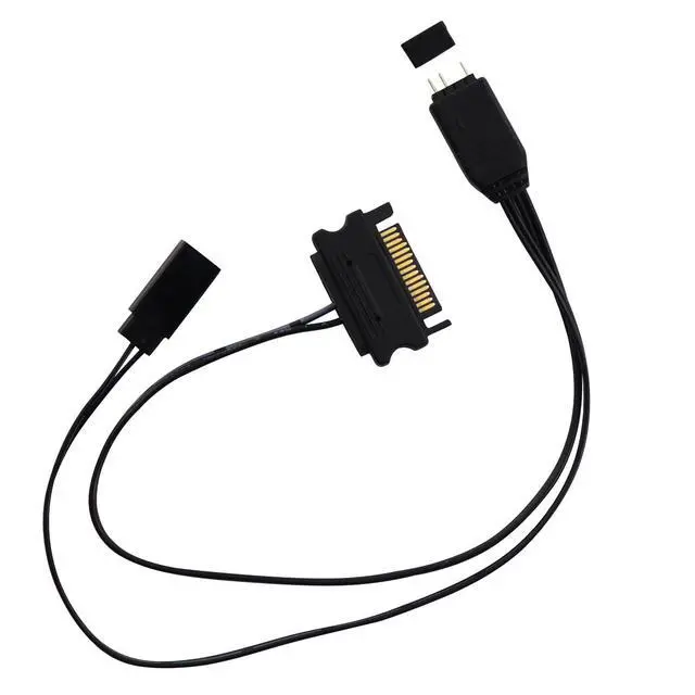 Characteristic:5V 3-pin ARGB to SATA power supply controller,it does not need motherboard support,directly plug in the power supply SATA interface to supply power.