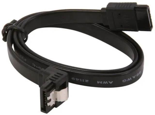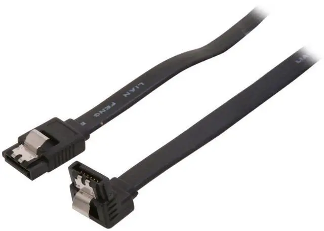40cm SATA 3.0 cable, RIGHT ANGLE 90 degree to straight w/ metal latch,Black color SUPER FAST 6GB/S. Backwards compatible with SATA revision 1 and 2 (SATA I and SATA II). Each major revision of the Serial ATA interface specification has doubled the maximum data transfer rate. The latest SATA Revision 3.0 allows for data transfer speeds of up to 6 Gbps. While the cables for all three revisions appear to be similar and will physically fit into the connectors on all SATA drives and controllers, the higher data transfer rate of SATA 6 Gbps requires higher quality materials and closer tolerances than the previous two revisions required. Storite SATA 6 Gbps cables are certified to provide maximum speeds from your SATA system, up to 6 Gbps when used with equivalent devices and controllers. One end of this internal cable features a straight connector, while the other end uses a 90-degree connector, which can make for better cable management in some situations, especially in tight spaces. Each end has an attached locking latch, to ensure that your connections do not come loose due to movement or vibration. Note that SATA 6 Gbps cables are backwards compatible and can be used with SATA 3 Gbps and SATA 1.5 Gbps devices. However, the data transfer of the SATA subsystem will be limited to that of the slowest device. So, for example, if a SATA 6 Gbps cable is connected to a SATA 3 Gbps drive and a SATA 1.5 Gbps controller, the drive will be limited to a transfer rate of 1.5 Gbps.