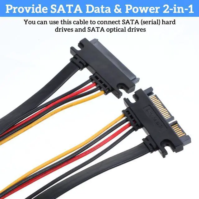 High-Speed Data Transfer: This combined sata connector complies with the SATA III specification, delivering data transfer speeds up to 6Gbps, ensuring optimal performance for modern solid-state drives (SSDs) and hard disk drives (HDDs). The cable is backward compatible with SATA II and SATA I devices, automatically negotiating either 3Gbps or 1.5Gbps for the appropriate speed