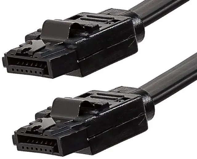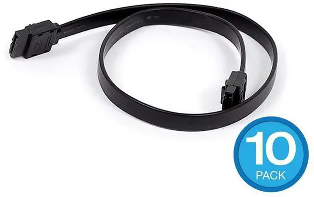 Each major revision of the Serial ATA interface specification has doubled the maximum data transfer rate. The latest SATA Revision 3.0 allows for data transfer speeds of up to 6 Gbps. While the cables for all three revisions appear to be similar and will physically fit into the connectors on all SATA drives and controllers, the higher data transfer rate of SATA 6 Gbps requires higher quality materials and closer tolerances than the previous two revisions required. Monoprice SATA 6 Gbps cables are certified to provide maximum speeds from your SATA system, up to 6 Gbps when used with equivalent devices and controllers. Each end of this internal cable features a straight connector with an attached locking latch to ensure that your connections do not come loose due to movement or vibration. Note that SATA 6 Gbps cables are backwards compatible and can be used with SATA 3 Gbps and SATA 1.5 Gbps devices. However, the data transfer of the SATA subsystem will be limited to that of the slowest device. So, for example, if a SATA 6 Gbps cable is connected to a SATA 3 Gbps drive and a SATA 1.5 Gbps controller, the drive will be limited to a transfer rate of 1.5 Gbps.