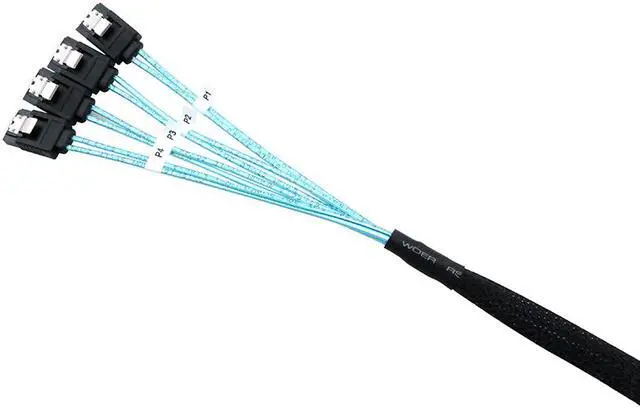 The BORSVAEN Mini-SAS to 4 SATA Forward Breakout Cable is an essential component of a hardware RAID configuration. Maximize the capacity of your RAID configuration with this robust but flexible cable that is built to withstand 24/7 use.