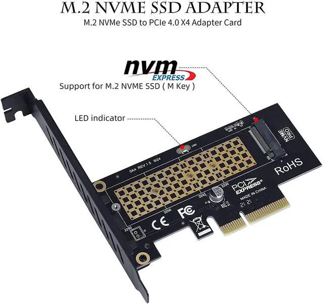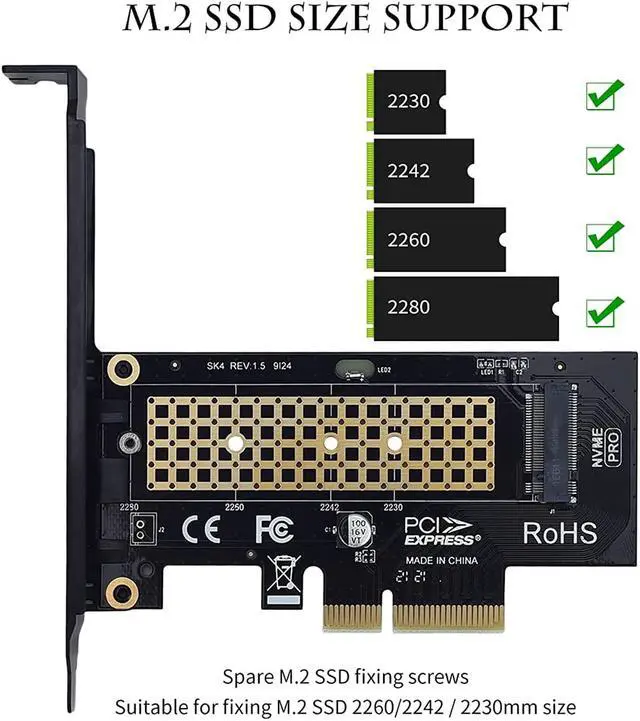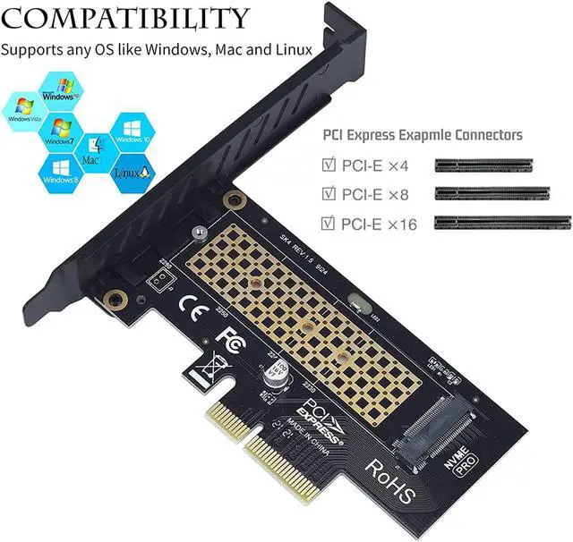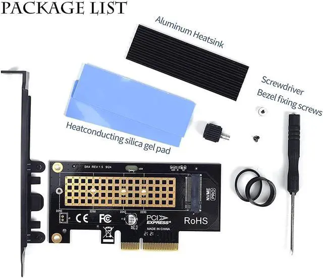 M.2 Nvme Ssd To Pcie 3.0 X4 Adapter Card With Aluminum Heatsink Solutionfeatures:Up To 32Gbps With Nvme Pcie 3.0 X4 Adapter, Offer 3200+ Mb/S Read And 1500+ Mb/S Write, Much Faster Than Usb-A And Usb-C Interfaceadd A M.2 Nvme Ssd To Your Pc Without The M.2 Slotapply To 2280 2260 2242 2230 Size M.2 Nvme Ssdsupport Pcie 1.0 2.0 3.0 Motherboardsupport Pcie X4 X8 X16Advanced Heat Dissipation Solution With Aluminum Heatsink Solutionsupport M.2 Nvme M&Amp;B+M Key Ssdsupports Windows, Mac And Linux Os.(No Driver Required)Package List:M.2 Nvme Ssd To Pcie 3.0X4 Adapter Card X1Aluminum Heatsink X1Heatconducting Silica Gel Pad X2Screwdriver X1Screw Kit