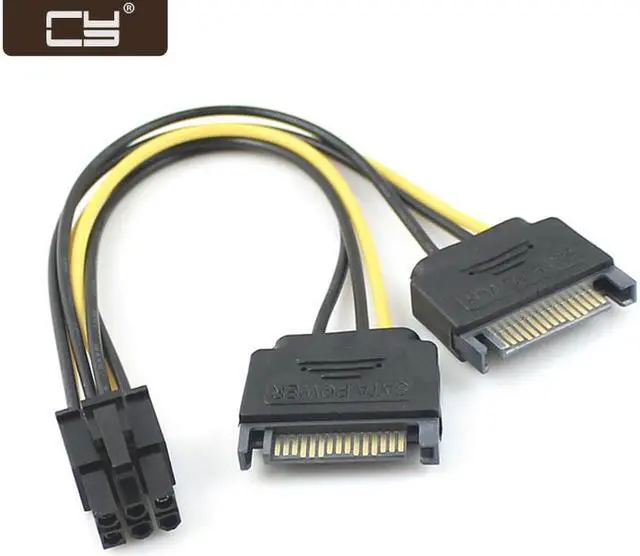CY Dual two SATA 15 Pin Male M to PCI-e Express Card 6 Pin Female Graphics Video Card Power Cable 15cm SA-117