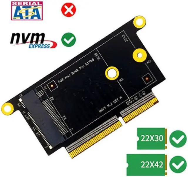 The adapter can covert the 2230/2242 NVME SSD to the Macbook Pro A1708 A1707 A1706 SSD.