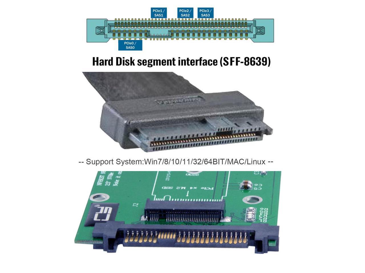 Connector: U.2 SFF-8639 male & 67 pin M.2 NGFF key M slot