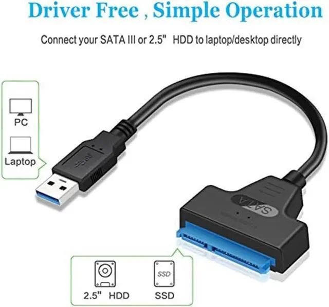 SATA Adapter Cable: This cable allows you to connect a 2.5 -inch SATA hard disk drive or solid-state drive to your computer through an available USB port. This is the easiest way to upgrade the hard drive in your laptop by adding an external hard drive / SSD via USB 3.0.