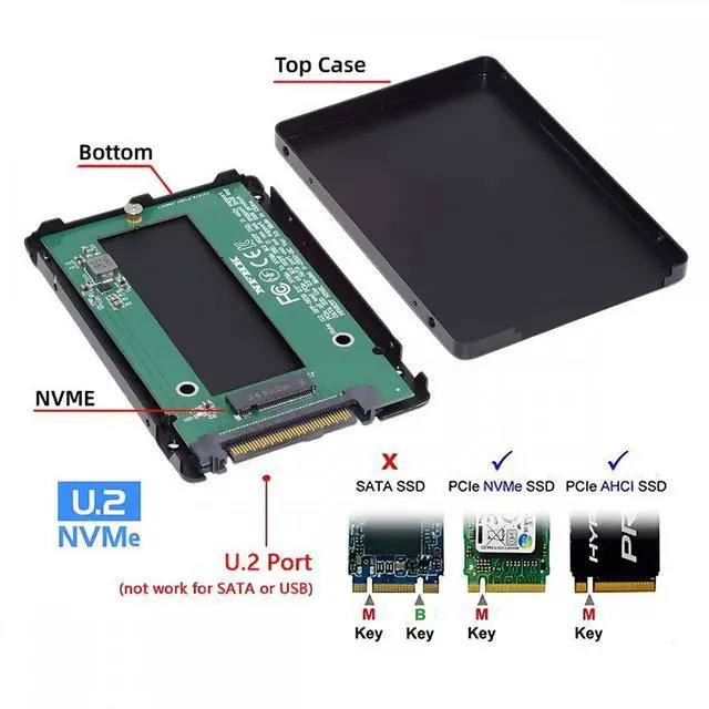 1) Need M-key or NVME SSD, the B-key or B/M-key SSD cannot work; Connector: U.2 SFF-8639 male 67 pin M.2 NGFF key M slot.