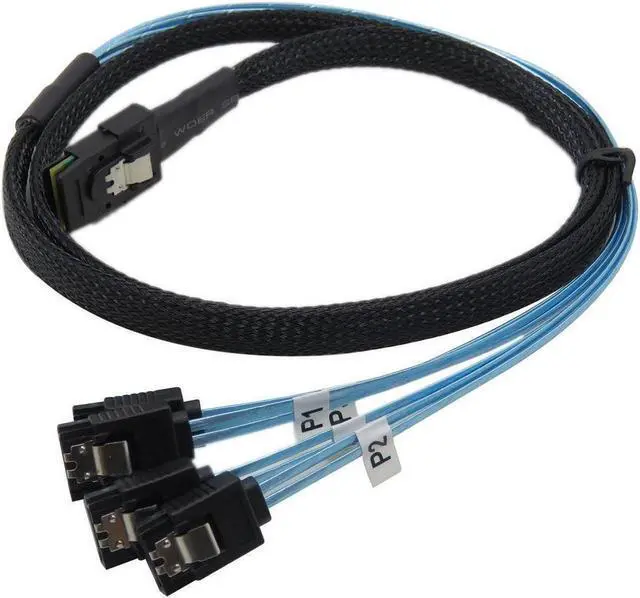 --Serial Attached SCSI (SAS) is a high-speed data storage interface designed for high-throughput and fast data access. --INTERNAL MINI SAS DATA CABLE connects a RAID or PCIe controller with an SFF-8087 port to 4 discrete SATA drives; Mini SAS to SATA adapter provides reliable internal connectivity between a Serial attached SCSI controller card in a computer system and direct attached storage devices with a SATA connector --LEVERAGE HARDWARE RAID PERFORMANCE with this SATA multi-lane cable; Connect up to 4 SATA drives to span RAID controller arrays and share performance across two PCIe 2.0 x8 lanes with compatible host bus adapters; Supports up to 6Gbs data transfer rate per drive --FLEXIBLE DESIGN of SAS breakout cable includes acetate cloth tape over slim ribbon cables for strain relief to protect cables without rigidity; Woven mesh sheath covers half of the cable for easy routing; P1 to P4 markers provide easy ID after installation; Low profile SATA connectors have easy-grip treads with stainless steel latches to prevent accidental disconnection and reduce vibration disconnections --SFF-8087 TO SATA COMPATIBLE with popular controller HBA cards such as 3Ware 9650SE-8LPML SATA2 Hardware RAID Controller Kit, Adaptec ASR-5805/512MB SAS RAID Controller, Adaptec 2258200-R 5405 RAID, Adaptec 2258500-R 51645 RAID, Dell 512MB PERC H700 Raid Controller, Dell Perc H200 Integrated Sas Pci-e 2.0 Raid Controller, Dell PowerEdge 8-port 6GB/s PCIe x8 SAS SATA RAID Controller PERC H310, HighPoint RocketRAID 2720SGL 8-Port SAS 6Gb/s PCIe 2.0 x8 RAID HBA, HighPoint RocketRAID 620 2 SATA Port PCI-Express, Intel Gigabit CT PCI-E Network Adapter, SAS9211-8I 8PORT Int 6GB Sata+sas Pcie 2.0 HBA Card,