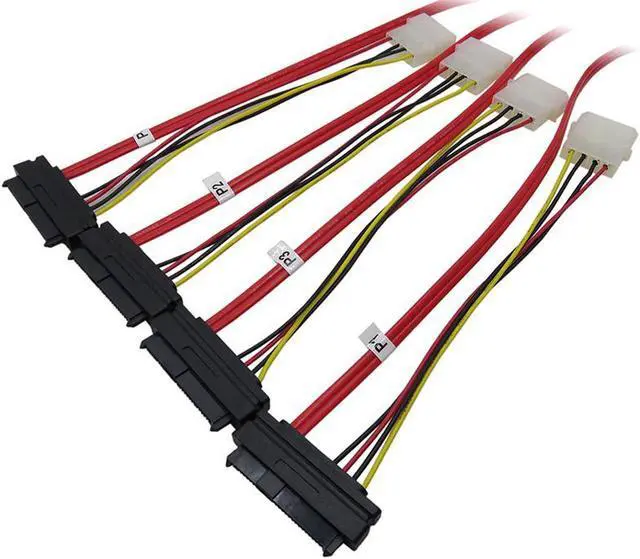 Internal MINI SAS DATA + POWER cable connects a SAS controller to 4 separate SAS HDD drives;